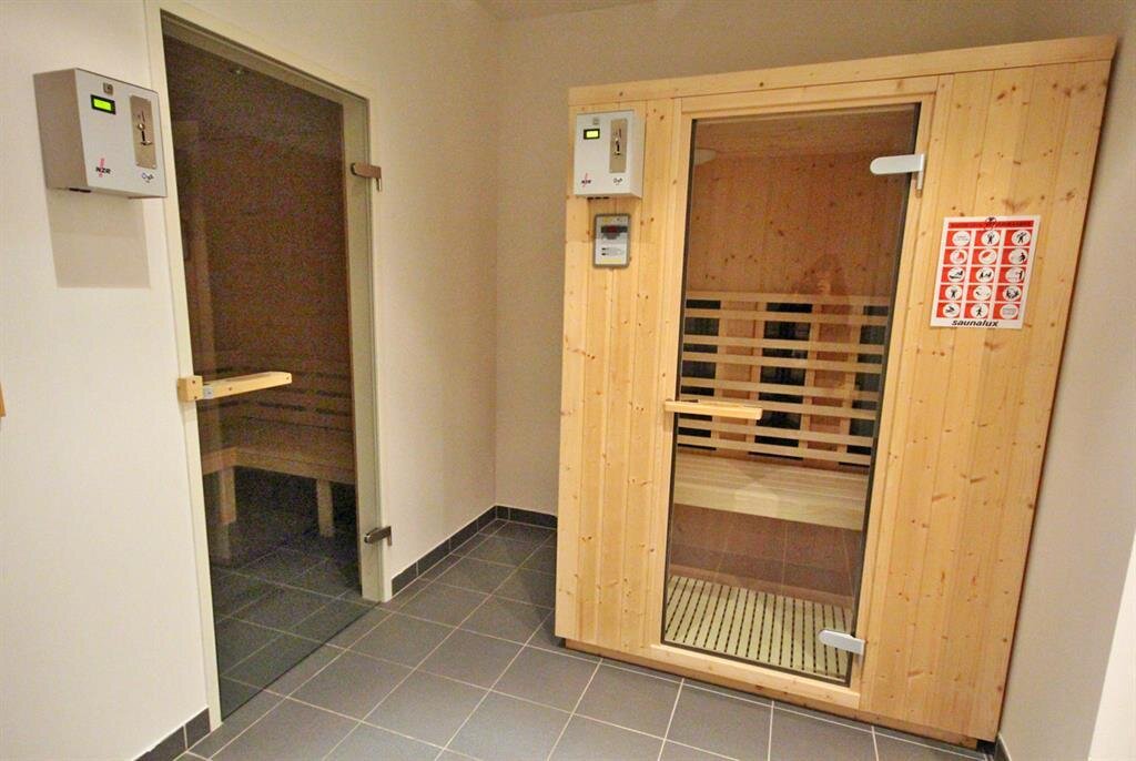Die Sauna im Alpinappartement Tamino kann von allen Gästen des Hauses genutzt werden. Der Wellnessbereich umfasst eine Sauna, eine Infrarotkabine und einen Ruheraum – ideal zum Entspannen nach einem aktiven Tag in den Bergen. Die Nutzung erfolgt gegen Münzeinwurf, um die Geräte zu aktivieren.