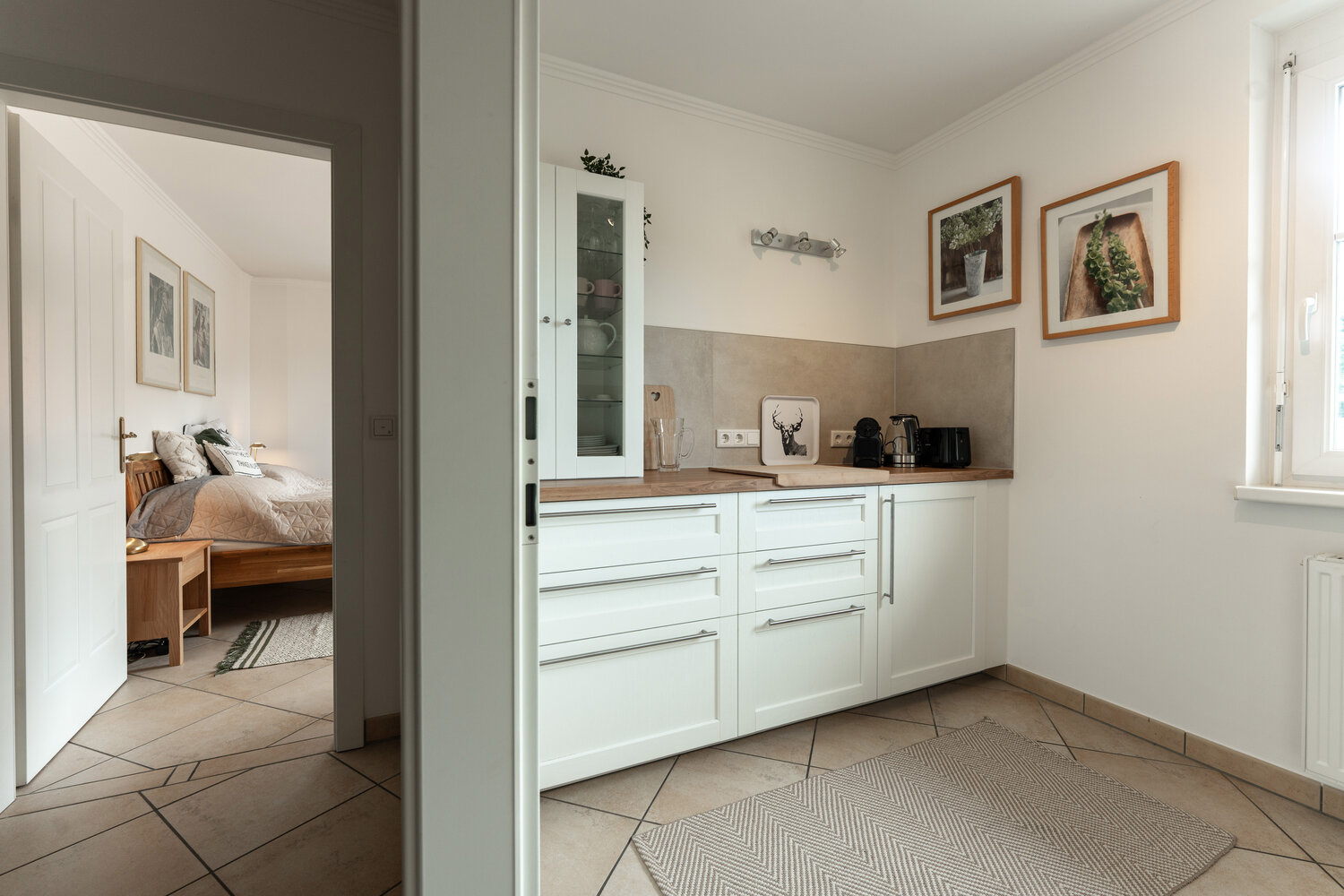 • Vollausgestattete Küche mit Geschirr, Töpfen und mehr