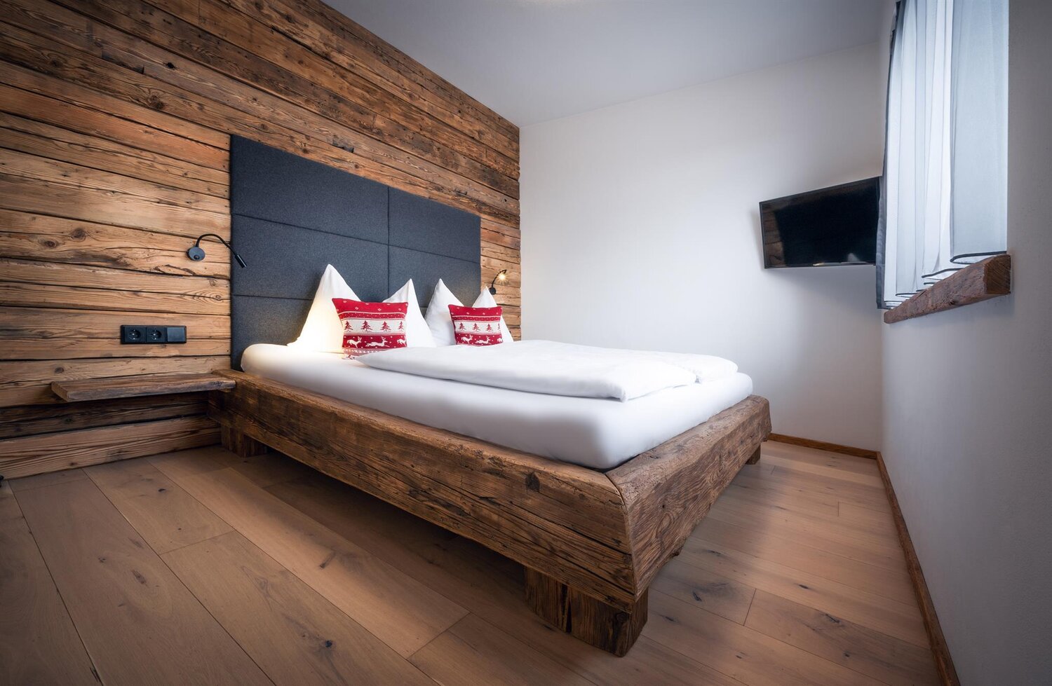 Drinnen erwartet Sie kein Bergklischee, sondern ein Mix aus alpinem Charme und klarem Stil. Das Interieur wirkt bewusst, nicht überladen – und schafft eine Atmosphäre, in der man sich sofort zuhause fühlt. Der Südbalkon öffnet den Blick in die Natur und holt die Sonne direkt an den Frühstückstisch.