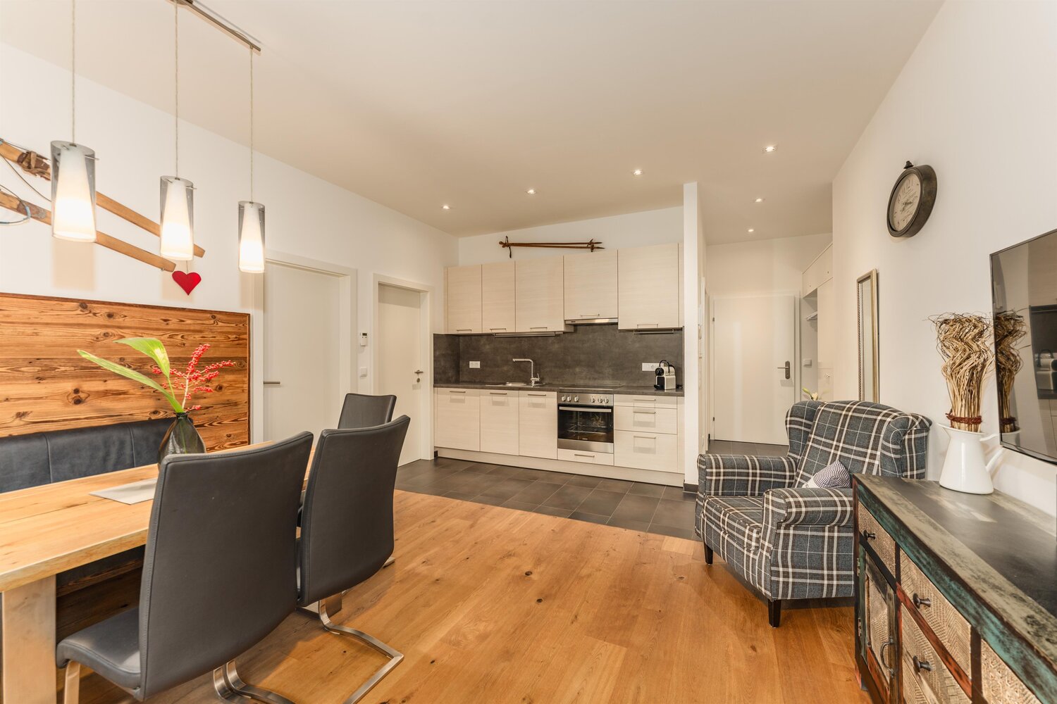 Im Appartement Gabbie treffen Ruhe und Zentrumsnähe auf perfekte Harmonie. Nur 8 Gehminuten trennen Sie von der Planai Talstation und doch wohnen Sie in einer ruhigen Ecke von Schladming, die Ihnen den idealen Rückzugsort bietet. Hier können Sie den Tag entspannt auf der sonnigen Terrasse ausklingen lassen oder nach einem kurzen Spaziergang das bunte Treiben der Stadt genießen.