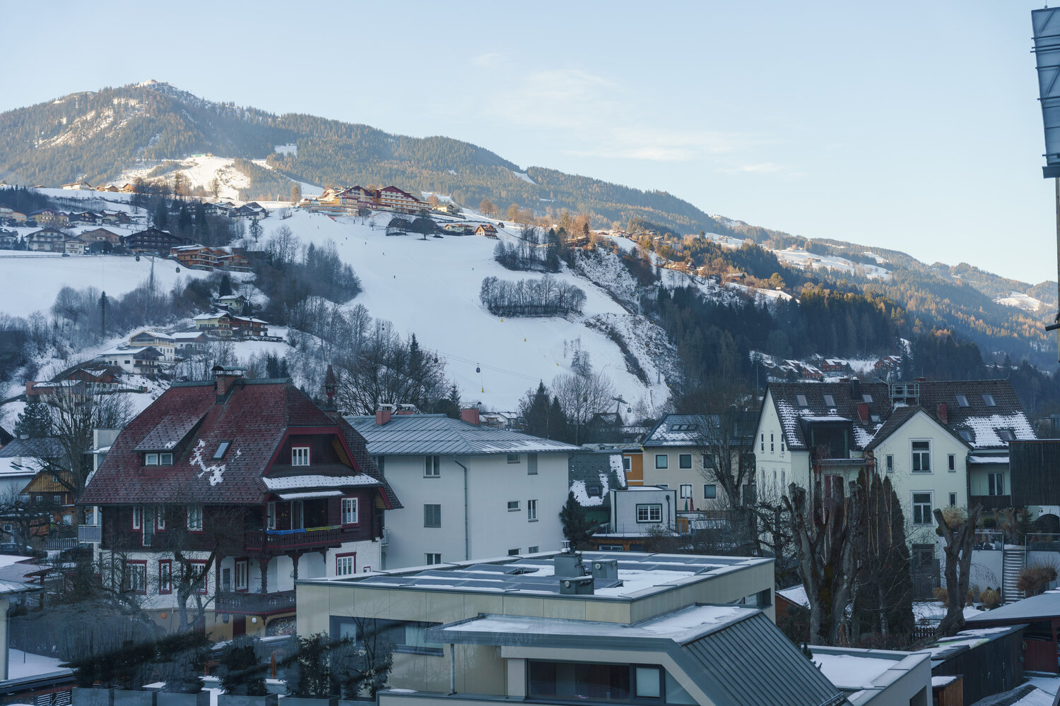 Im Haus Crystal wohnen Sie ruhig und trotzdem mitten im Geschehen – nur 5 Gehminuten vom Stadtzentrum Schladming und der Talstation der Planai entfernt. Morgens duftet es nach frischem Gebäck von der Bäckerei gegenüber, tagsüber starten Sie direkt vor der Tür zu Wanderungen, zum Skitag oder zum Stadtbummel.