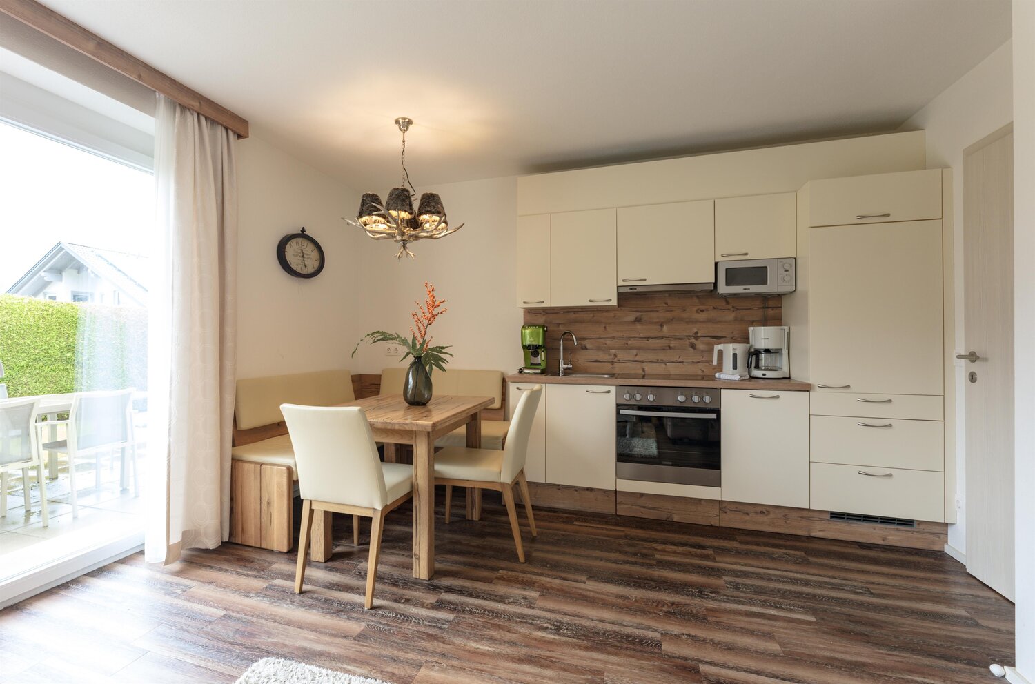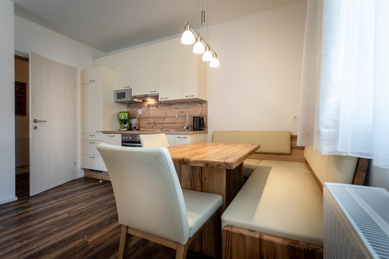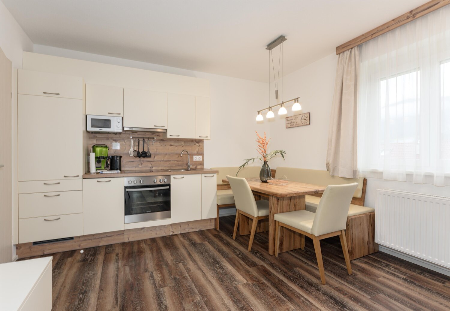 Vier liebevoll gestaltete Appartements bieten Platz für Paare, Familien oder Freunde – mit Zirbenbetten, Balkon oder Terrasse und einem Ausblick, der den Alltag vergessen lässt. Statt Schnickschnack gibt’s hier Qualität, Ruhe und eine Atmosphäre, die ankommen lässt. Ob Frühstück in der Morgensonne, Skischuhwärme am Nachmittag oder der letzte Blick auf die Gipfel vor dem Einschlafen – alles fühlt sich einfach richtig an.
