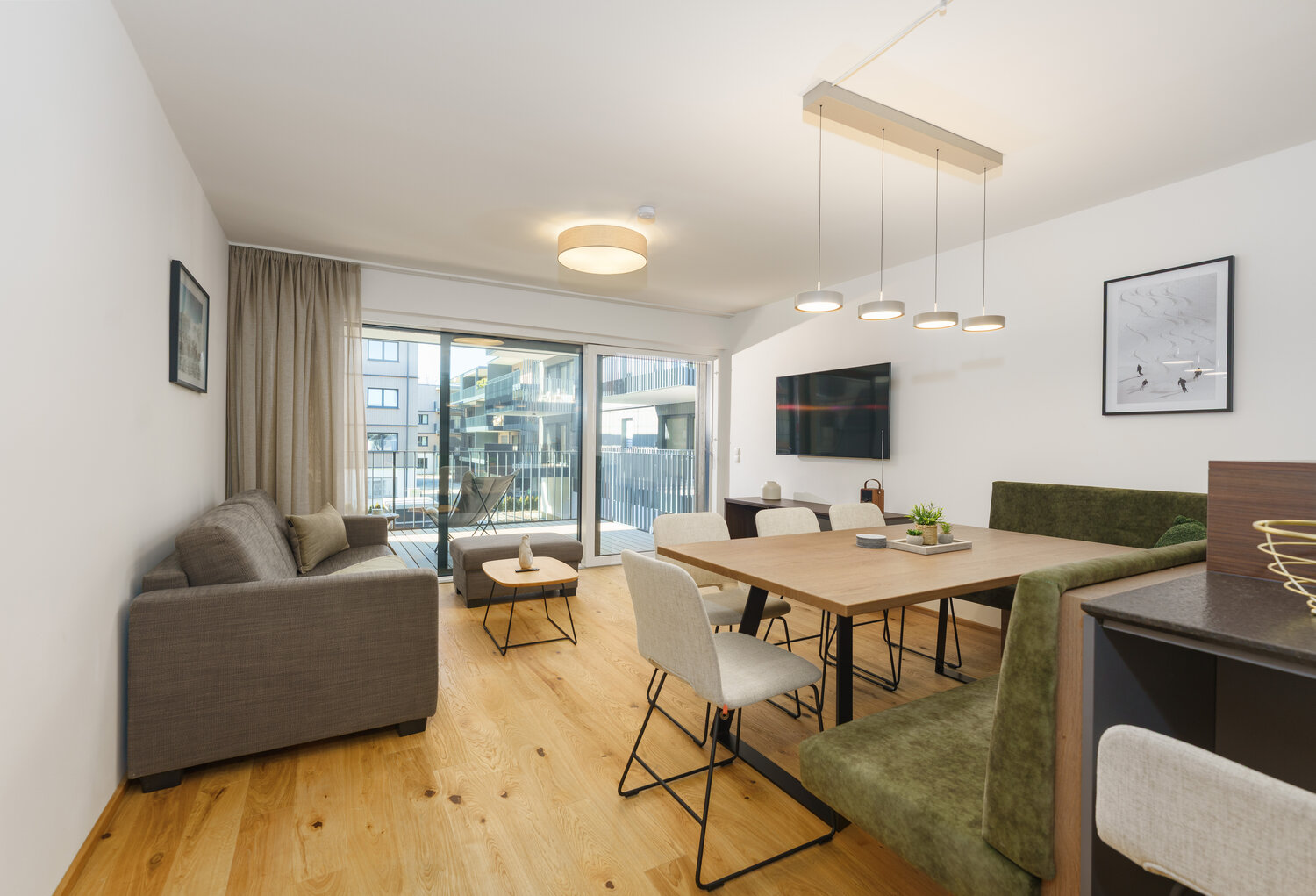 Neu gebaut, angenehm klar gestaltet und herrlich unaufgeregt bieten die Appartements Raum zum Durchatmen, Zusammensein und Wohlfühlen. Große Fenster holen Licht und Natur ins Innere, Balkone und Terrassen öffnen den Blick nach draußen – und die Details passen: Tiefgarage, Skikeller mit Skischuhwärmern und kurze Wege zu Berg, Ort und Natur lassen jeden Tag leicht starten.