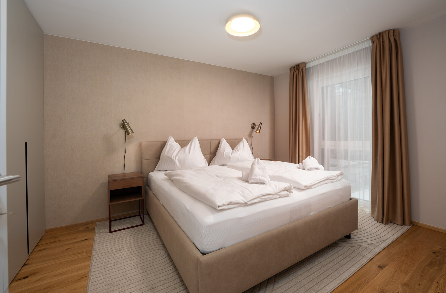 Newly built, pleasantly minimalist, and wonderfully calming, the apartments offer space to breathe, relax, and enjoy time together. Large windows bring light and nature inside, while balconies and terraces open up the view outdoors. And the details are just right: underground parking, a ski room with boot warmers, and short distances to the mountains, town, and nature make every day start with ease – whether you’re hitting the slopes early, heading out with the kids, or simply arriving to unwind at the end of the day.